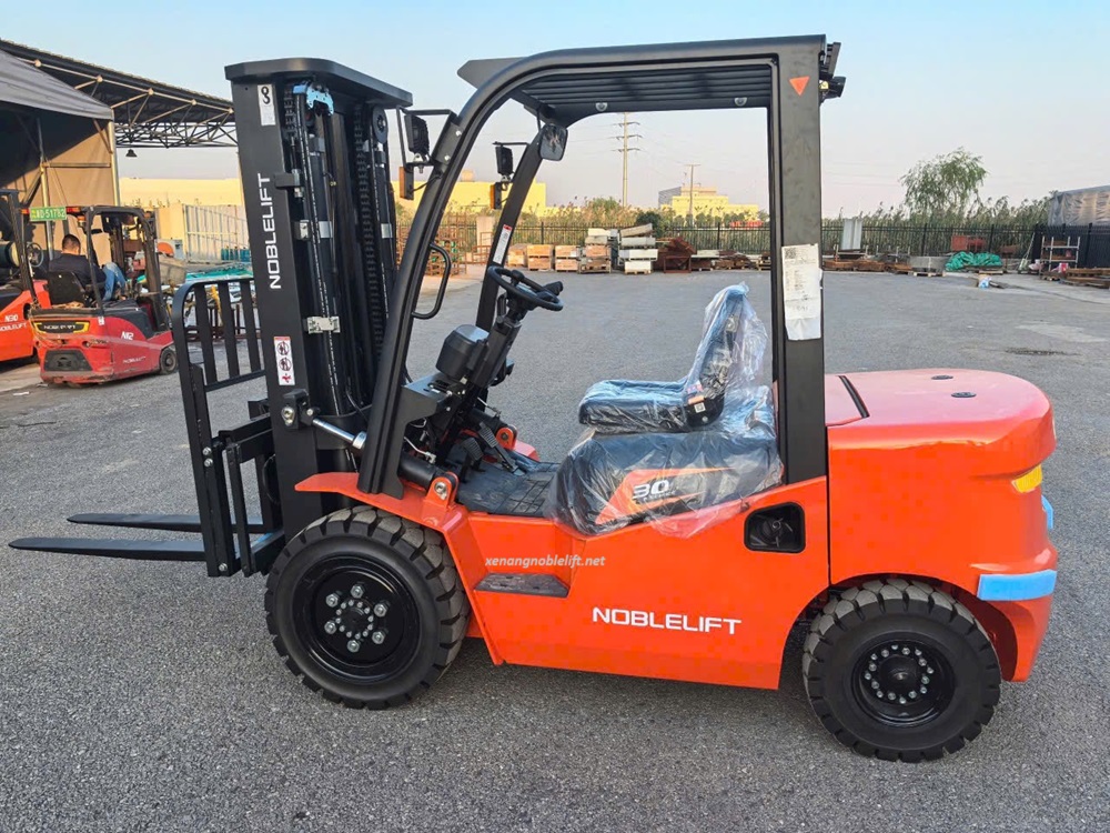 Xe nâng dầu 3 tấn Noblelift là loại xe nâng được thiết kế để nâng và di chuyển hàng hóa có tải trọng lớn trong nhà máy, kho bãi, cảng, và công trường. Dòng 3 tấn Noblelift này có ưu điểm là hoạt động mạnh mẽ, bền bỉ, thích hợp cho công việc liên tục và môi trường ngoài trời.