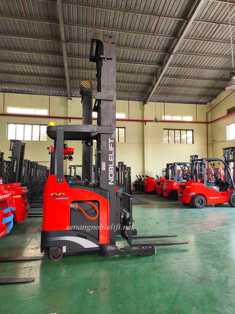 Xe nâng điện cao Reach truck đứng lái Noblelift Cấu tạo đặc biệt thiết kế càng zic zac có khả năng đưa xa gần giúp tiếp cận hàng hóa dễ dàng. Có thể dễ dàng điều khiển tại chỗ 360° trong không gian hạn chế nhờ bán kính quay vòng nhỏ. Khung gầm nhỏ gọn cho phép dễ dàng tiếp cận các ứng dụng lối đi hẹp.Bánh xe tải nhỏ và ngắn giúp dễ dàng tiếp cận nhiều cấu hình chiều cao cột giữa các giá đỡ, giúp dễ dàng sử dụng trong nhà kho và giá đỡ có nhiều kích thước khác nhau.