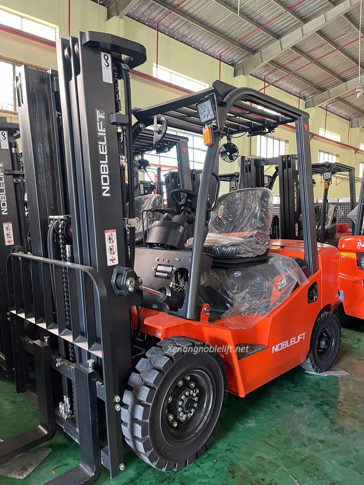 Xe nâng điện ngồi lái 2.5 tấn FE4P25Q Noblelift với tải trọng 2.5 tấn là lựa chọn lý tưởng cho các doanh nghiệp cần vận chuyển hàng hóa nặng trong kho bãi. xe nâng điện ngồi lái 3 tấn Noblelift tiết kiệm chi phí kết hợp giữa xe nâng đốt trong truyền thống và xe nâng điện chạy bằng pin lithium-iron, có đặc điểm là không gian lái xe rộng rãi và vận hành thoải mái.
