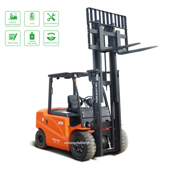 Xe nâng điện Noblelift 7 tấn FE4P70N Thương Hiệu Xe Nâng Điện Trung Quốc Uy Tín Tại Việt Nam Tập trung vào dòng xe nâng điện pin lithium chất lượng cao, thời gian sạc nhanh, tuổi thọ pin dài. Xe nâng điện Noblelift sử dụng PIN LITHIUM là thế mạnh của hãng Noblelift