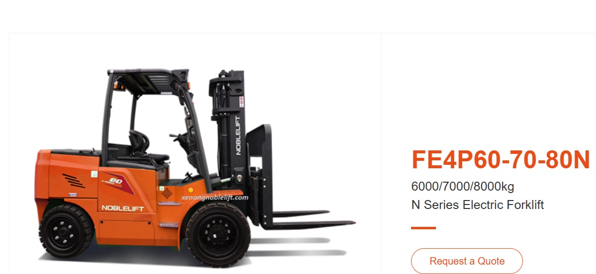 Xe nâng điện Noblelift 8 tấn FE4P80N Thương Hiệu Xe Nâng Điện Trung Quốc Uy Tín Tại Việt Nam Tập trung vào dòng xe nâng điện pin lithium chất lượng cao, thời gian sạc nhanh, tuổi thọ pin dài. Xe nâng điện Noblelift sử dụng PIN LITHIUM là thế mạnh của hãng Noblelift