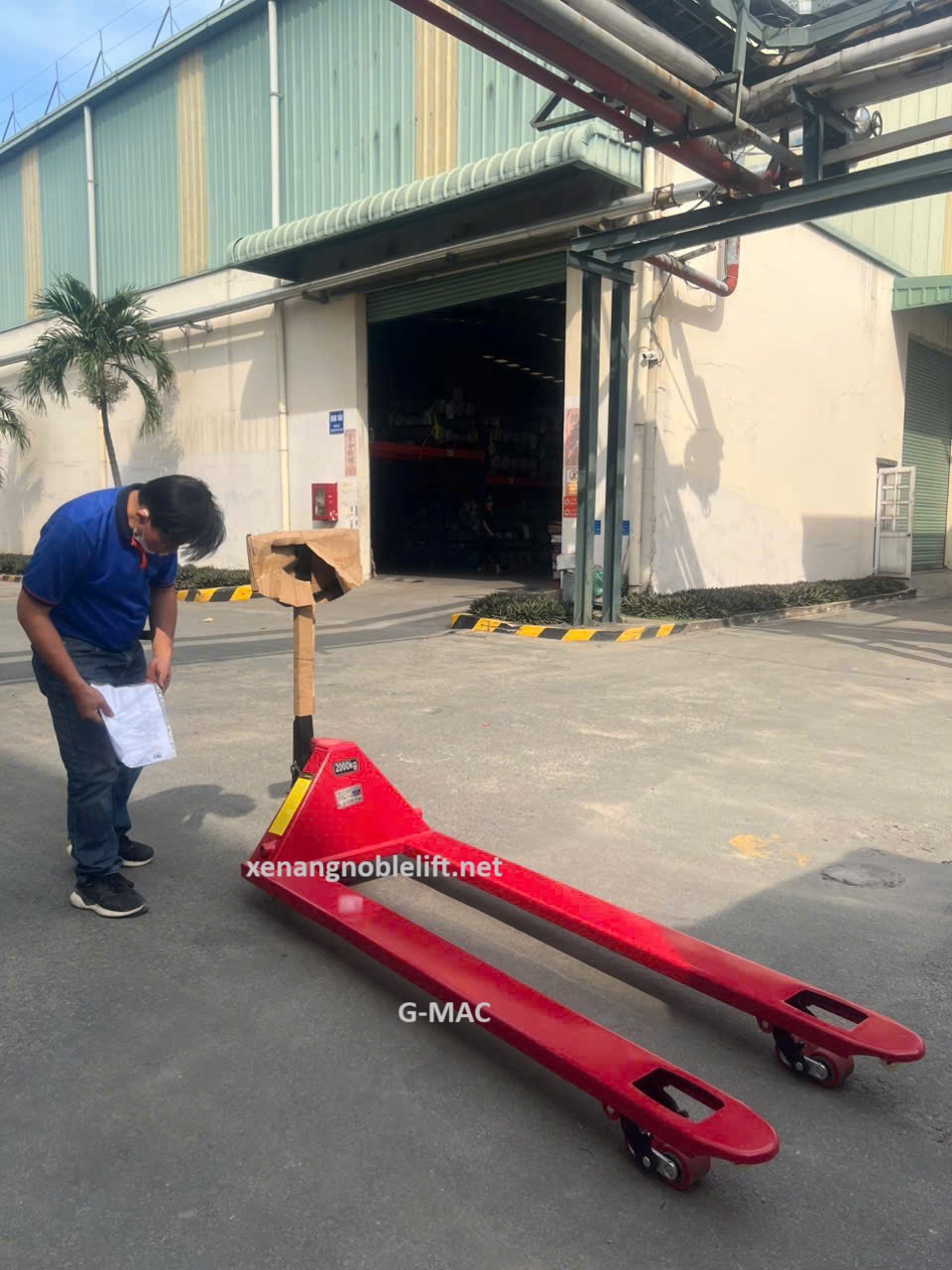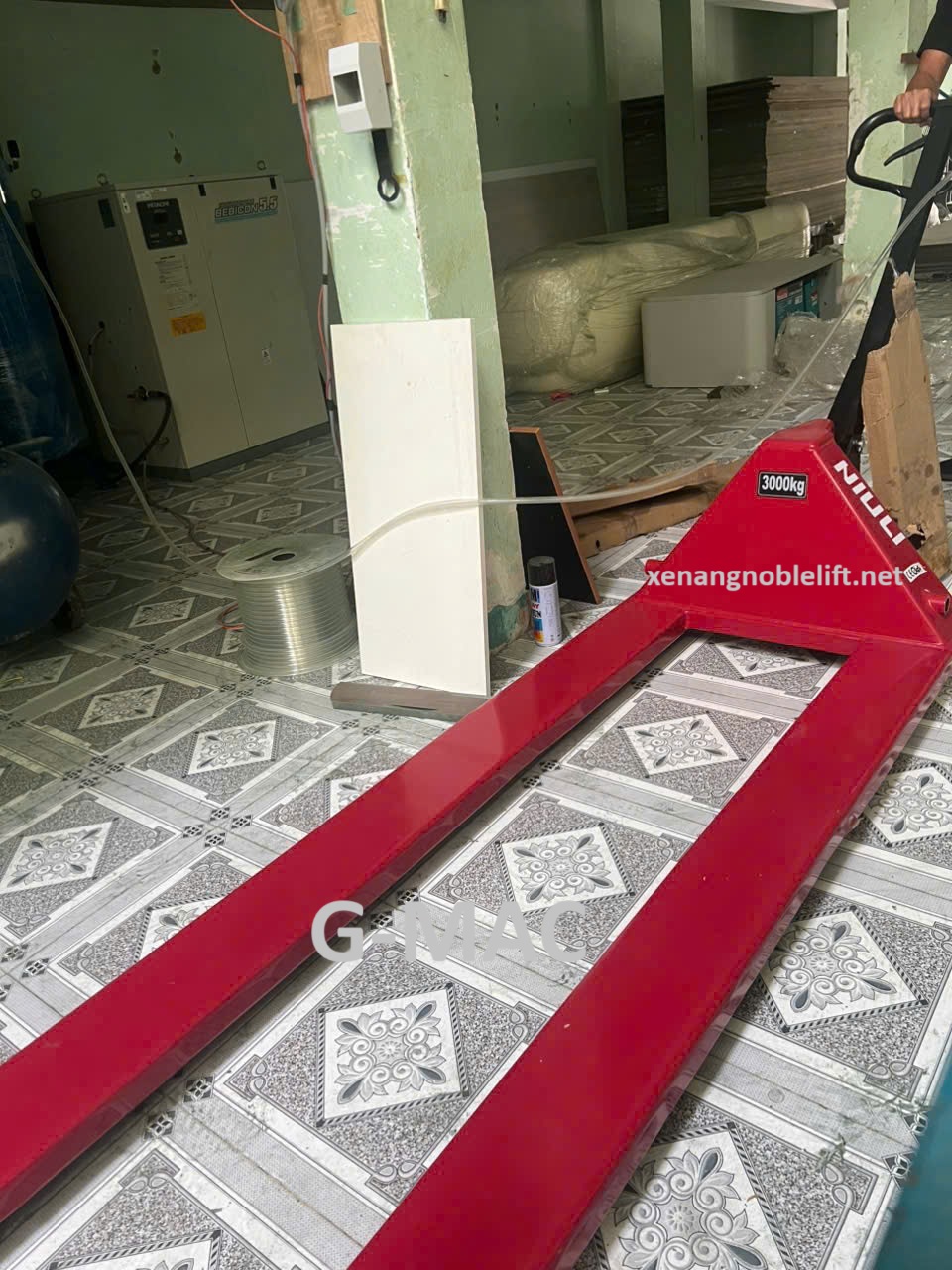 - Tay cầm và bơm thủy lực: Thiết kế chắc chắn, dễ thao tác, tích hợp van xả để hạ hàng hóa an toàn.