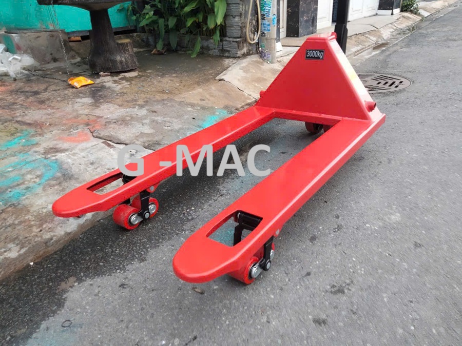 Xe nâng tay thấp kéo pallet 3000kg là dòng thiết bị nâng hạ cơ bản, sử dụng lực tay để di chuyển và nâng hạ hàng hóa đặt trên pallet. Với tải trọng tiêu chuẩn 3 tấn, xe phù hợp để vận chuyển đa dạng loại hàng hóa có trọng lượng trung bình đến nặng, đặc biệt là trong không gian hạn chế như kho chứa, xe container, hoặc nhà xưởng.
